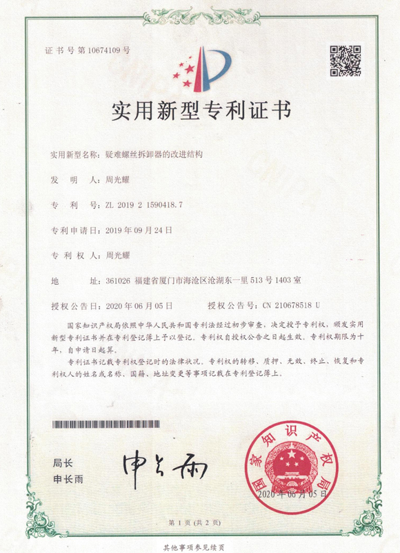 自主知識產(chǎn)權,無需焊接、不用切割、不破壞任何部件,可無損拆缷市面上所有的防盜螺絲以及平面的普通螺絲。